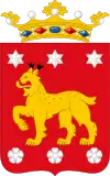 Псковська губернія | 8 грудня 1856 | У лазуровому полі золотий барс, над ним срібна десниця, що виходить із срібних хмар. |