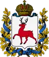 Нижньогородська губернія | 8 грудня 1856 | У срібному полі червлений олень, що йде; роги з шістьма парогами, копита чорні. |