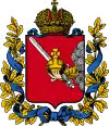 Владимирська губернія | 8 грудня 1856 | У червленому щиті золотий левовий — леопард, в залізній, прикрашеній золотом та кольоровими каменями короні, який тримає у правій лапі довгий срібний хрест. |