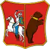 Августовська губернія | 1837 | Щит червоний розсічений. У правій частині на срібному з золотою збруєю коні, вкритому лазуровим, з золотою облямівкою, килимом, срібний озброєний вершник (погоня) з піднятим мечем та з лазуровим щитом, на якому золотий червлений хрест. У лівій частині чорний ведмідь з золотим нашийником. |