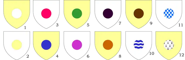| Шість гонт | Ромб | Веретено | Турнірний комір | круг (безант) | Щиток |