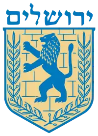 Геральдичний щит являє собою англійську форму, обведену синім контуром. На щиті зображено Стіну Плачу жовтого кольору і синю фігуру лева, який стоїть на задніх лапах в обрамленні оливкових гілок. Над щитом назва міста написана на івриті. Лев символізує рід (коліно) Юди (див. Лев Юди), оливкові галузки символізують мир, синій колір води символізує юдаїзм.
