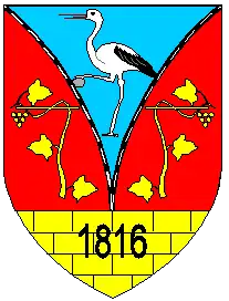 Варязький геральдичний щит із базою, горішня частина поділена тридільно-вилоподібно двома лініями, що топографічно зображують залізницю. В першій лазуровій частині зображений лелека з каменем у лапі; у другій і третій — золота виноградна лоза на червоному полі. В базі — золота кам'яна кладка з датою заснування міста — 1816 р.