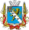 Щит розділений на два поля: у верхньому — золотому, двоголовий орел, прикрашений золотою короною, що тримає в обох лапах блискавки, полум'я яких обернуто вниз, зі щитом на грудях, на якому в червоному полі зображений Георгій Побідоносець, що сидить на білому коні і вражає змія. У нижньому — чорному полі, зображений лев з людським обличчям в пам'ять скрутного становища шведського короля Карла XII після Полтавської битви.