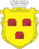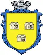 В золотому щиті на верхньому лазуревому полі зображено ріг достатку та кадуцей. В нижньому золотому полі зображені три водяні млини. Поля розділені цегляною аркою. Щит увінчано срібною міською мурованою короною та накладено на синій декоративний картуш. При практичному використанні (виготовленні значків, сувенірів, вимпелів тощо) картуш може бути срібним У золотому полі три червоні водяні млини, два над одним.