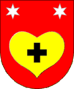 У золотому полі червоне серце, на якому золотий лапчастий хрест, над ними обабіч — по синій шестипроменевій зірці.