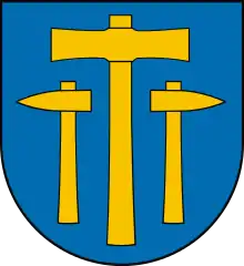 Перший герб Вєлічки пов'язаний з гірничою традицією міста. На його щиті, зображені інструменти, вживані при видобуванні солі, типу галіт: по двох сторонах вертикально встановленого посольчика (posolczyk) знаходились дві кирки (kilof) з обернутими на зовні лезами (стрижні для подрібнення). Така емблема (godło) була офіційним символом Вєлічки аж до року 1594, коли влада міста володіла селом Мержончка. Купуючи ту місцевість від канцлера коронного Яна Оцеського прийнли її герб: білого орла на червоному фоні, з повішеним на грудях червоним щитом з білим хрестом. До правих кігтів орла додано посольчик (posolczyk) з перехресними кирками (kilof), а до лівих кігтів - вагу, символ виміру справедливості – і так був створений новий герб Вєлічки. Від того часу, під час урядових чинностей мери міста завішували на шиї горжет з тим власне знаком а також з латинським написом "Armia Regiae Liberae Montanaquae Civitas Vielicensis 1594" (Герб Королівського Вільного Гірничого Міста Вєлічка 1594). До первинного гербу місто повернулось тільки в 1938 р.