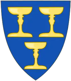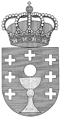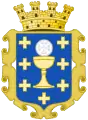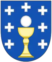 Опис: на блакитному полі золота чаша, над якою срібний гостія, і супроводжується сімома хрестами, з того ж металу, по три зі сторін та один у главі.