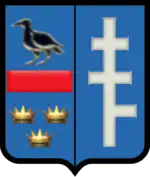 Щит розсічений. У правому зеленому полі золоті в’їзні ворота, в лівому синьому – три срібні смуги. Ворота вказують на назву міста та перекази про давність часу його виникнення. Три смуги означають три мости через річку Ямгорів, які з’єднували передмістя: Монастирський Кут, Котиківку, Фільварків Кут.
