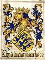 Герб князя Йоахима схожий на королівський герб, крім щита, який ділиться з першої в тому, що палати Ольденбурга і друга цифра збігається з Будинком-де-де Лаборд Монпезад. Корона є те, що від принца данського.