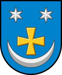 Герб являє собою щит, в лазуровому полі якого срібний місяць рогатий і поставлений в нього золотий хрест, а у горішніх кутах щита дві шестикутні срібні зірки. Цей герб використовувався ще за часів Російської імперії і був затверджений 4 червня 1782 року.