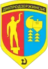 У першому червоному полі герба розташоване зображення пам'ятника «Прометей» — революційного символу міста. У другому лазуровому — золоті ківш, реторта та дві золоті гірлянди ізоляторів, що є символами металургійної, хімічної та енергетичної промисловості відповідно.