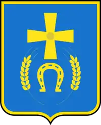 Загалом уся композиція символізує єднання людей (житні колоски) навколо духовного початку (золотий хрест) і прагнення до щасливого заможного життя (золота підкова).