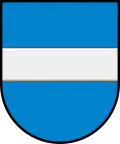 Щит обрамований декоративним картушем і увінчаний срібною міською короною з трьома вежками.