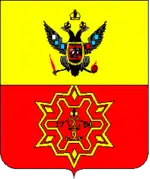 «У горішній половині [перетятого] щита у золотому полі Державний Російський герб [ознака військових поселень], а в долішній, у червоному полі земляне укріплення, всередині котрого вензель Імператриці Єлизавети Петрівни; обабіч же його 1754 рік.»[3]