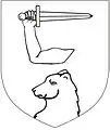 У привілеї Сигізмунда ІІІ на магдебурзьке право для міста Олександрова (Лубен) від 16 січня 1591 р. В той період з'являється герб міста: рука, що тримає оголений кинджал, під нею — ведмежа голова.[2] Очевидно, рука з мечем є частиною герба Гедиміновичів «Погоня».