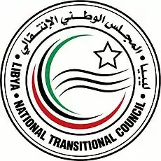 Герб був представлений у вигляді двох кіл: на зовнішньому колі арабською та англійською мовами було написано «Лівія. Національна перехідна рада»; на внутрішньому — були зображені три смуги червоного, чорного і зеленого кольорів, що утворювали півмісяць, п'ятикутну зірку і три хвилясті смуги.