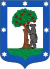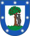 У срібному полі чорний ведмідь спирається на суничник з червоними плодами; на блакитній лиштві сім срібних шестикутних зірок. Щит прикрашений великою відкритою королівською короною із золота та дорогоцінного каміння, з вісьмома розетками (п’ять видимих), що чергуються з вісьмома перлами; ця корона зазвичай використовується в іспанській геральдиці для територіальних та муніципальних гербів.