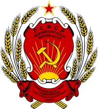 Гербом МАРСР, згідно 111 статті Конституції МАРСР, став герб РРФСР з додаванням відповідних написів марійською мовою. Назва республіки на національній мові мала вигляд: «Марийский АССР», а девіз: «Чила Еллас пролетар-шамич, ушниза!». Станом на 1972 марійський девіз змінився і звучав як: «ЧЫЛА ЭЛЫСЕ ПРОЛЕТАРИЙ-ВЛАК УШНЫЗА!».