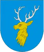 В часи речі посполитої існував такий герб - у лазуровому щиті золота голова оленя з срібними рогами.