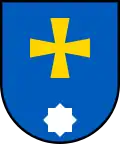 Герб являє собою щит, у синьому полі якого золотий рівносторонній лапчатий хрест. Під хрестом срібна восьмипроменева зірка.