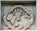 Герб і щит Молдови на написі з Аккерманської фортеці у варіанті із сонцем між рогами.