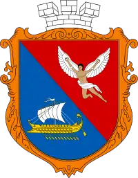 Щит пересічено зправа, у першому червоному півполі Ікар із срібними крилами, у другому синьому - грецький корабель бірема. Щит покладено на картуш і увінчано міською мурованою короною.
