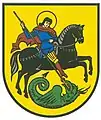 У золотому полі святий Юрій, повернутий вліво, на чорному коні зі срібною гривою, пробиває списом змія зеленої барви; святий Юрій у червоному плащі та червоних чоботях, кінь у золотій збруї.