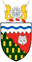 Клейнод складається з двох золотих нарвалів, що охороняють розу вітрів, що символізує Північний магінтний полюс. Біла верхня третина щита символізує полярний льодовик і перетинається хвилясто-синьою лінією, що символізує Північно-Західний прохід. Діагональна лінія, що розділяє червоний та зелений сегменти нижньої частини щита, відображає верхню межу лісу. Зелений колір символізує лісисті ділянки на південь від межі лісів, тоді як червона площа символізує тундру на півночі. Мінерали та хутро, важливі основи північного багатства, представлені золотими ґонтами в зеленій частині та маскою білої лисиці в червоній.[1]