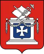 Блазон: срібний лицарський хрест на синьому тлі.