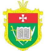 Затверджений 9 серпня 2005 року сесією обласної ради. У червоному полі срібний лапчастий хрест. Щит обрамовує декоративний картуш і увінчує Тризуб.