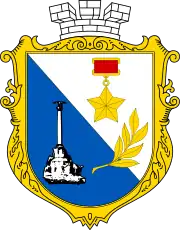 Герб — це французький геральдичний щит скошений з правого верхнього кута. Відношення ширини до висоти — 8:9. В першій срібній частині — «Золота Зірка» міста-героя, в другій синій — срібний силует пам'ятника загиблим кораблям. Поверх обох частин покладена золота лаврова гілка, що символізує славу захисників міста.