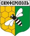 За радянських часів існував герб затверджений 21 серпня 1971 року рішенням II сесії XIII скликання міської ради: у лазуровому щиті з червоною главою — п'ять золотих бджіл навколо червоного кола з золотою датою «1784». Глава обтяжена золотими серпом і молотом. Бджоли на щиті означають історію міста і його назву. Коло в центрі емблеми характеризує Сімферополь як обласний адміністративний центр. Бджоли й коло в центрі утворюють квітку — символ столиці квітучого краю. Автори — Л. Лабенок, М. Лядовський, Л. Фруслов.