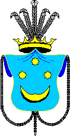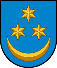 У синьому полі золотий півмісяць ріжками догори, над ним (одна над двома) три золоті восьмипроменеві зірки.