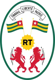 Герб Республіки Того складається з срібного щита овальної форми з зеленим краєм. У щиті зображено два притулені червоні леви, між якими, посередині золотого щита на золотому тлі абревіатура «Республіка Того», на яку опираються два притулені прапори і над ними стрічка з девізом країни. Герб був прийнятий 14 березня 1962 року.