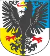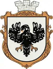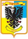 ![]() Варіант офіційного герба м. Тячів з написами. | |