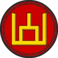 | Щит | золотий тризуб на лазуровому тлі з тонкою золотою облямівкою |