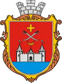 Герб являє собою червоно-лазуровий щит іспанської форми. В центрі щита розташовано срібне зображення фортеці з трьома вежами. На середній вежі знаходиться золотий півмісяць, на двох інших — білі бунчуки. Над фортецею знаходяться дві перехрещені шаблі, над ними — золотий хрест.