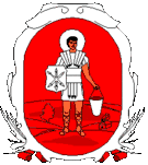 Щит обрамлено декоративний картушем і увінчано срібною міською короною у вигляді трьох веж.