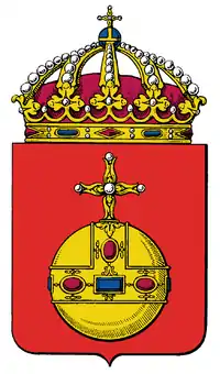 У червоному полі золота держава (куля з хрестом), оздоблену коштовним камінням.