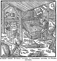 - «Герди, що вловлюють частинки золота, або покриті, або не покриті. Якщо вони не покриті, то частинки золота збираються в їх ямках, якщо вони покриті, то вони чіпляються до їх покрову. Ямки в них влаштовують по-різному — або залізним дротом, або поперечними рейками, прикріпленими до герда, або у формі великих або чотирикутних, або поперечних виїмок в самому герді або його верхньому лотку. Покриваються ж герди шматками шкіри або тканини, або дерном, про що я по порядку розповім.»