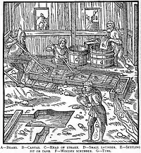 «Планенгерд, тобто герд, покритий розстеленими полотнами, влаштовується в такий спосіб. Встановлюються похило дві колоди довжиною 18 футів, шириною 1/2 фута і товщиною 3/4 фута. Передня половина кожного з них має виїмку, щоб в ці виїмки можна було вправити кінці дощок, так як дно герда складається з дощок довжиною 3 фути, покладених поперек, впритул одна до іншої. Половина кожної з колод є суцільною, тобто не має виїмок, і на 1/4 фута вище дощок так, щоб вода, що стікає, не витікала по боках, але текла прямо. Також і верх герда розташований вище іншої його частини і має похил, для того щоб вода могла стікати. Весь герд вистилається шістьма натягнутим полотном, яке притиснуте рейками. Перше полотно займає нижнє місце, на нього накладається інше таким чином, щоб вони перекривалися, подібним же чином накладається третє на друге і т. д.; бо якби полотна розташовувалися у зворотному порядку, що стікаюча вода вганяла б рудний дріб'язок або олов'яну крупу під полотна, і вся праця промивання руди пропадала б даром. Після того як полотна розстелені описаним чином, хлопчики або дорослі чоловіки накладають рудний дріб'язок або олов'яну крупу, змішані зі шламом, на верх герда, відкривають маленький жолобок і пускають в нього воду. Після цього вони збовтують гребками рудний дріб'язок або олов'яну крупу, поки потік води їх не зносить на полотна. Потім цими ж гребками вони легенько проводять по полотнинах, поки шлам не виливається в бак або поперечний жолоб. Коли ж на ряднах від шламу нічого не залишилося або залишилося його трохи, причому лише рудний дріб'язок або олов'яна крупа, вони знімають ці полотна і прополіскують їх в підставленій поруч діжці, на дні якої цей дрібний матеріал і осідає. Після цього вони відразу ж відновлюють ту ж роботу. Нарешті, вони виливають воду з діжки і збирають рудний дріб'язок або олов'яну крупу. У разі, якщо цей рудний дріб'язок або олов'яна крупа, зісковзнувши з полотна, застряють в баку або в поперечному жолобі, вони знову перемивають шлам.»