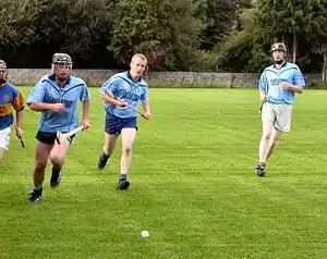 Якщо м'яч падає на землю, його потрібно підняти або вдарити по ньому ключкою, або ногами. Не дозволяється піднімати м'яч рукою. Вищий пілотаж — підкинути м'яч ключкою в повітря, а потім відбити його ударом ключки. Якщо гравець зловить рукою м'яч, що летить у повітрі, дозволяється пробігти з ним у руках не більше 4 кроків, а потім підкинути його у повітря, або відбити ключкою із землі. Гравець, який хоче пронести м'яч більше трьох кроків, може використовувати ключку, щоб нести на ній м'яч. Але це вимагає великої спритності.