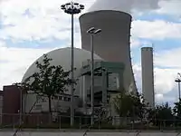 - Подвійна, часто з великим простором між оболонками, із внутрішнім металевим облицюванням або без нього (так званий «французький» варіант). Зовнішня, ненапружена оболонка для захисту від зовнішніх впливів і внутрішня, попередньо-напружена, для локалізації аварій з розгерметизацією першого контуру. У Франції для реакторів потужністю від 1300 МВт використовуються подвійні оболонки, також вони застосовуються в останніх енергоблоках у Бельгії[6]. Варіант з подвійною гермооболонкою спочатку розглядався і в СРСР для реакторів ВВЕР-1000, однак рішенням голови Держкомітету СРСР з використання атомної енергії Петросянца А. М. був обраний одиночний варіант[14]. У 2000-х роках для нового проєкту АЕС-2006 з реакторами ВВЕР-1200 Росія вирішила використовувати подвійну гермооболонку зі сталевим внутрішнім облицюванням. Об'єм внутрішньої оболонки — 65 000 м³, між внутрішньою і зовнішньою оболонками — простір об'ємом 18 000 м³[15].