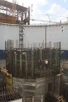 - Товщина основи від 1 м (скельна порода чи опора на спеціальну споруду, як в реакторах ВВЕР-1000) до 5 м (недостатньо твердий ґрунт під основою, висока сейсмічність, попередньо-напружена основа)[2]