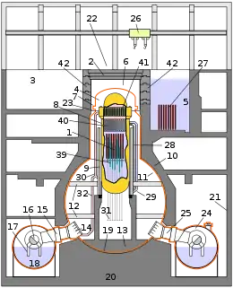 - з льодовим конденсатором в межах гермооболонки, який здатний конденсувати пар у разі аварії (наприклад, станції АЕС Секвойя(англ.) і Ватс Бар(англ.) в США)[8];