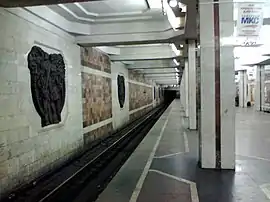 Архітектура станції суворо урочиста, завдяки чіткому ритму прямокутних колон, пластичній структурі стелі з великогабаритних плит з восьмигранними кесонами та ритму світильників із світлозахисними вертикальними ребрами. Назві станції відповідають геральдичні художньо-декоративні чеканні вставки на колійних стінах із зображеннями орденів та медалей. Стіни та колони оздоблені білим уральським та коричневим закарпатським мармуром, підлога — з плит червоного та сірого граніту.