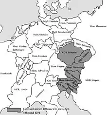 У 1269 році після смерті герцога Каринтії і Крайни Ульріха III, який заповідав свої володіння Отакару, останній став правителем цих герцогств. На початку 1270-х років територія держави Пржемисла Оттокара II стала охоплювати величезну територію від Судет до Адріатики.