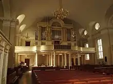 Будівля створена в стилі класицизму. В інтер'єрі переважає білий колір. Кафедра в стилі ампір створена А. М. Фалькранцем.