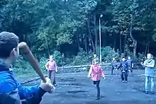 Аналогічна російській грі, відомій як лапта, нагадує американську гру бейсбол і англійський раундерз.